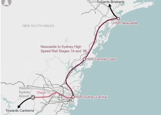 The scheduled time plan in HSRA’s business case for initial delivery and operations on the Newcastle to Central Coast (Stage 1A) section is 2037, while the line reaching Sydney Central (Stage 1B) in 2039, and Western Sydney International Airport (Stage 1C) would be delivered in 2042.