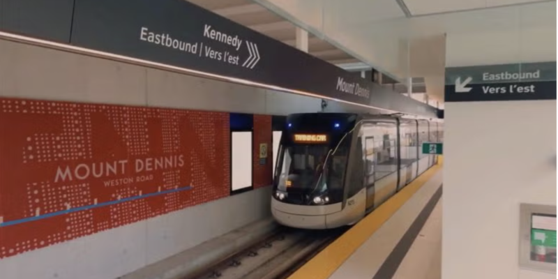 Being delivered by Crosslinx Transit Solutions, comprising Aecon, ACS Infrastructure Canada, EllisDon and AtkinsRéalis, working with Metrolinx and Infrastructure Ontario, over than 10km of the 19km Eglinton Crosstown LRT from Mount Dennis Station to Kennedy Station run underground.