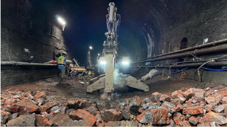 In another first for India, the Crossover TBMs employed a unique technique in a 554 m (1,820 ft) long section from Hutatma Chowk to CST stations. They were used in the benching of the NATM Platform tunnel through basalt rock (removal of the bottom section of rock remaining in the station after conventionally removing the top section). “This requires fine control on the operational parameters of the TBM because only 25% of the cutter head is excavating the rock mass, while the remaining 75% of the cutter head has no contact with rock or soil. In addition, the TBM was relaunched without using a reaction frame, instead of taking reaction from half segments erected during the benching of the NATM Platform Tunnel. These innovative concepts were accomplished for the first time in India at Mumbai Metro Line-3, Package 1, and I, therefore, have many reasons to feel proud on the completion of tunneling,” said Singh.